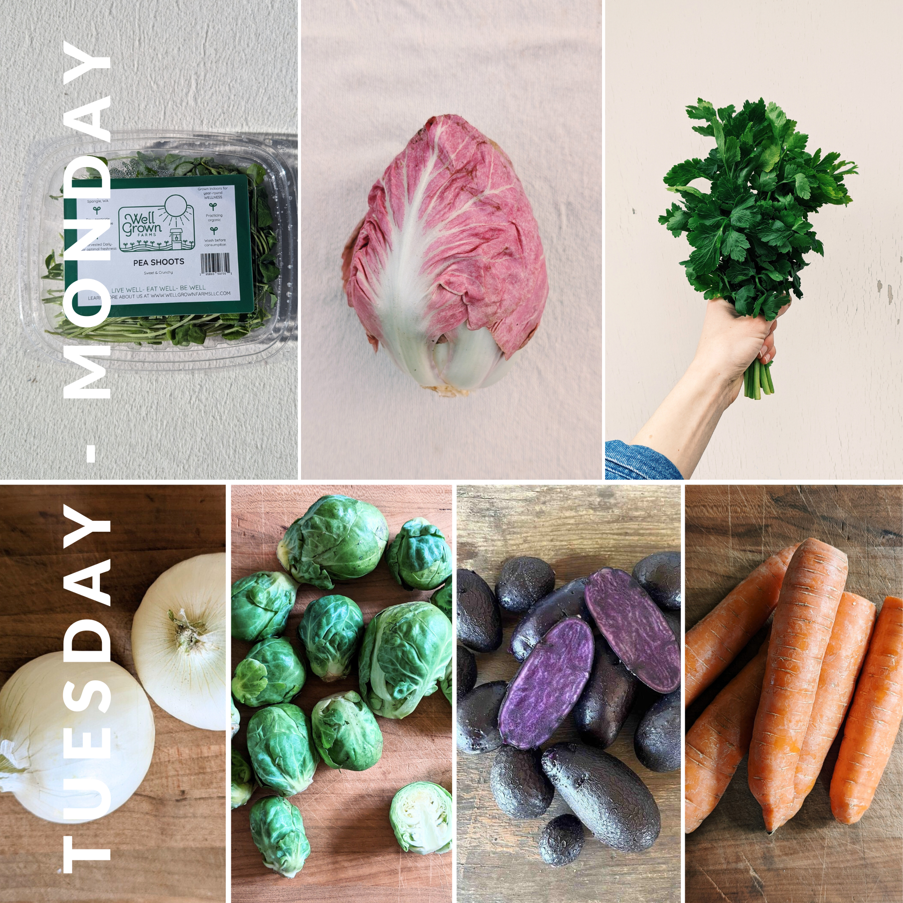 ~ Thanks for supporting local farmers and understanding items and or amounts may change based on seasonality, weather, and growing conditions.