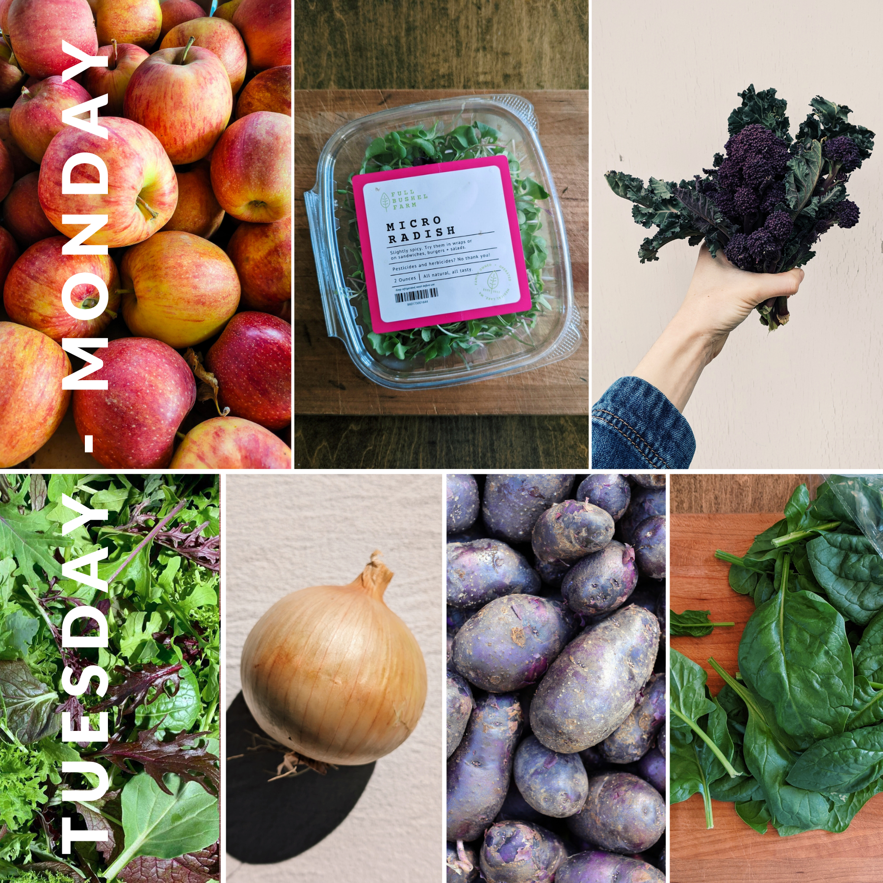 ~ Thanks for supporting local farmers and understanding items and or amounts may change based on seasonality, weather, and growing conditions.