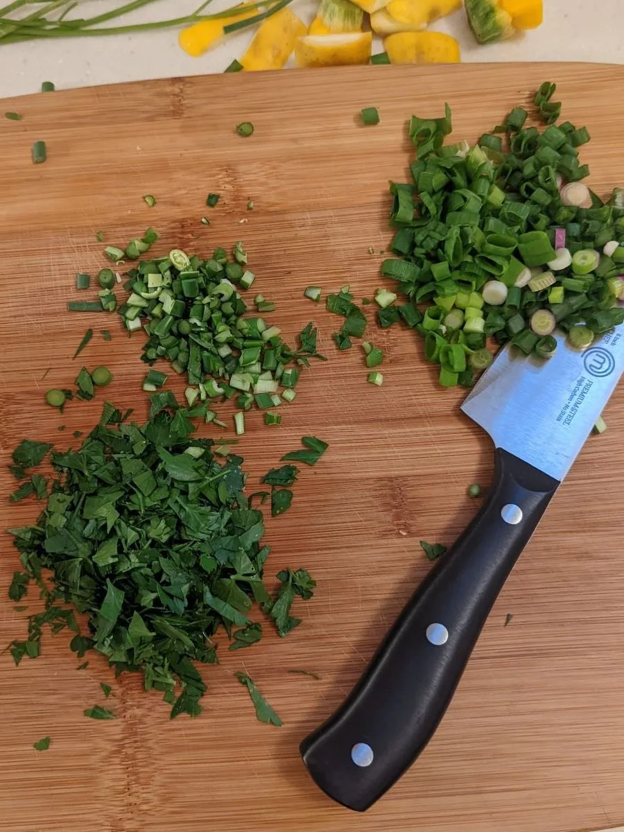 This herby dressing puts a local and seasonal spin on Argentinian chimichurri! Paired with mushrooms and summer squash, these flavors feel lively and reminiscent of flavors found east of the Andes.