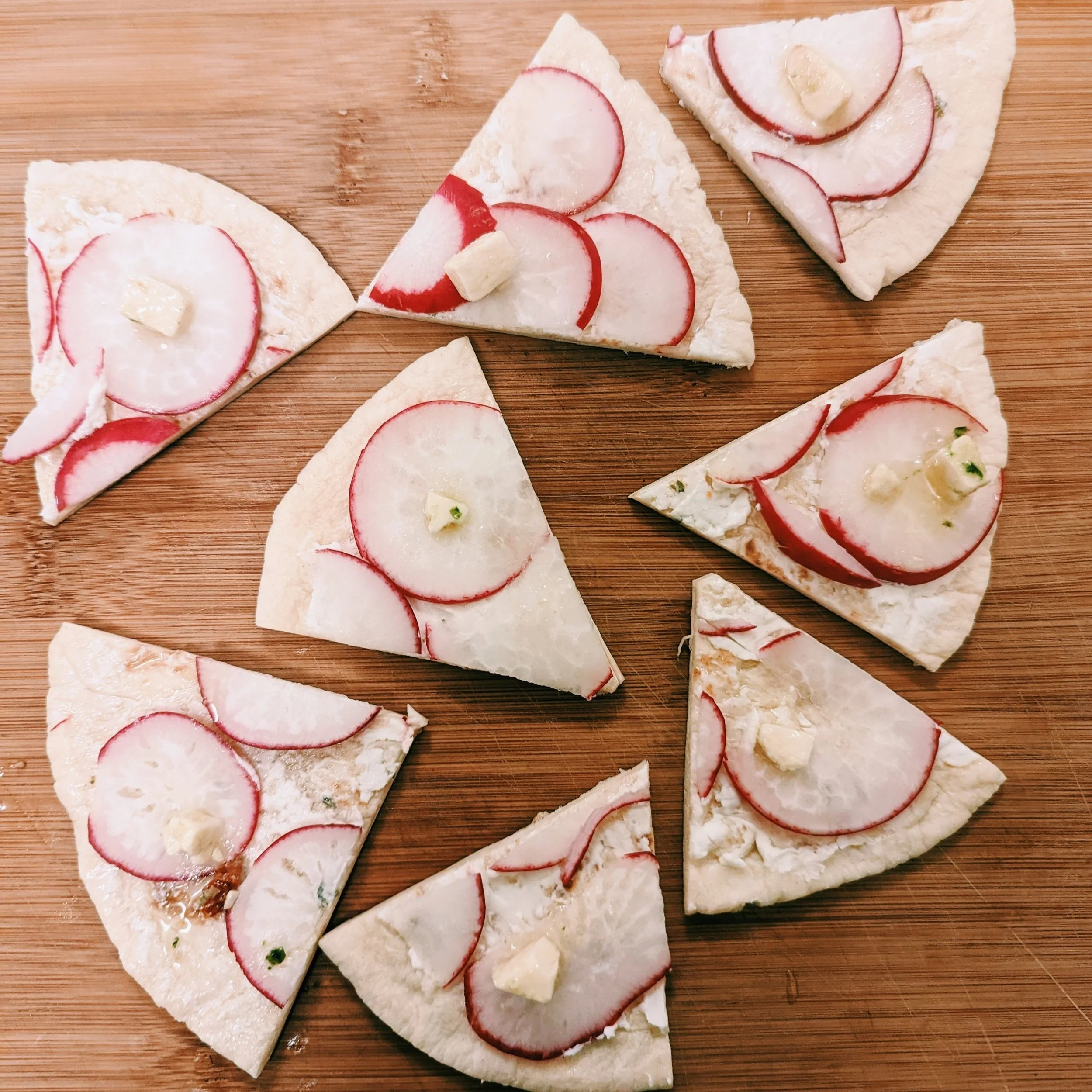 This appetizer is simple and fresh! We love how the radishes add a pop of color to this tasty snack.