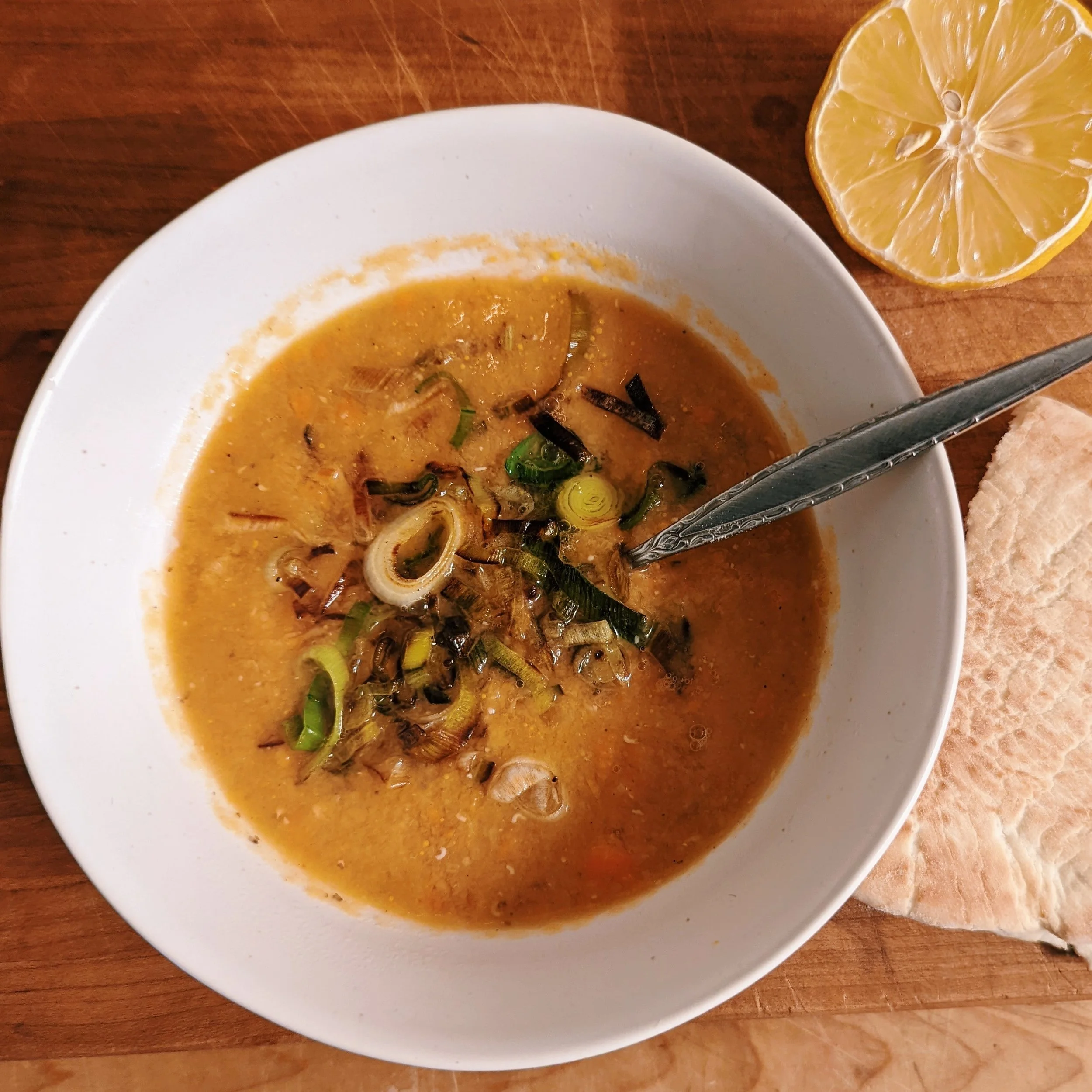 RED LENTIL SOUP WITH CRISPY LEEKS