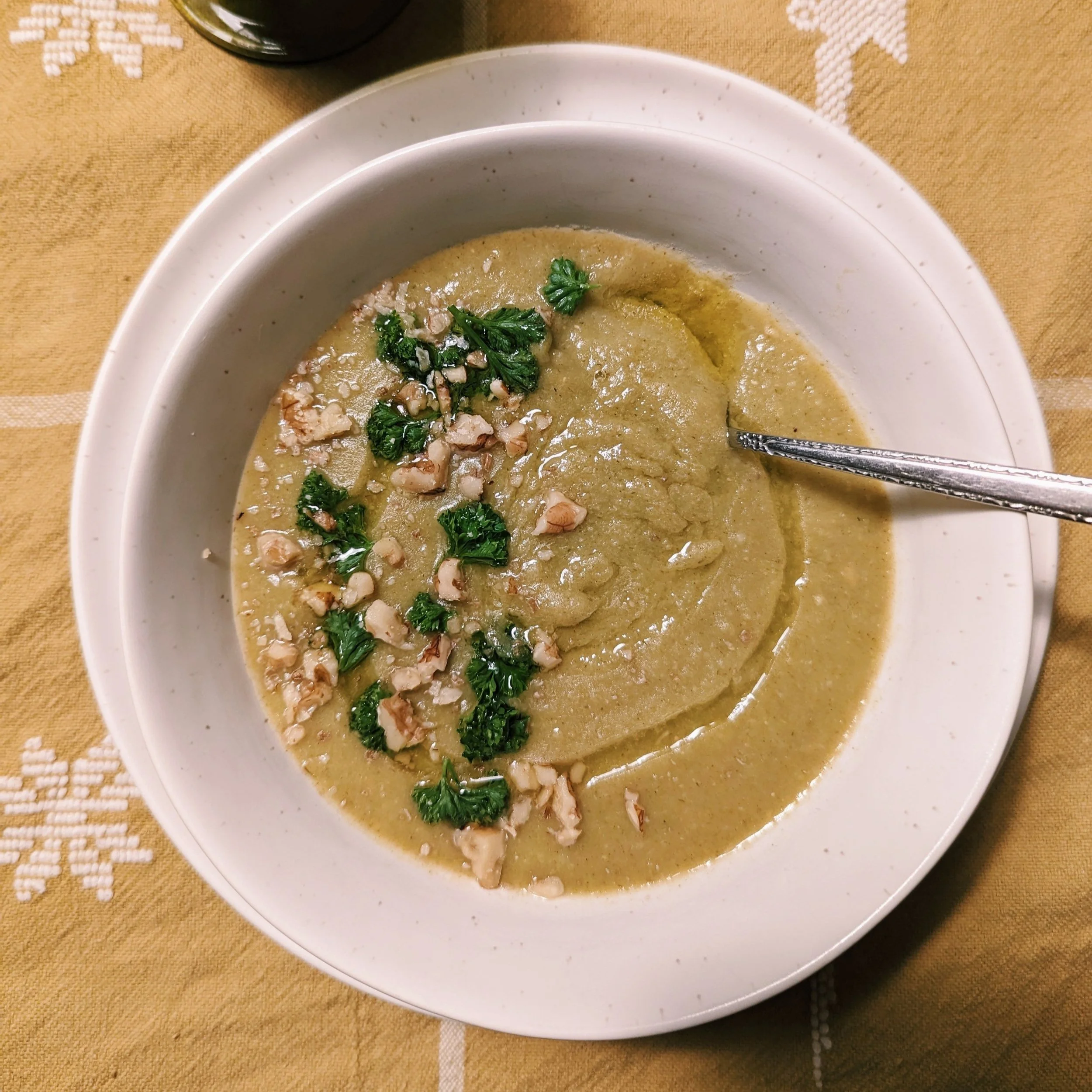 Add the mustard and the lemon juice. Using an immersion blender or upright blender, blend the soup until smooth.